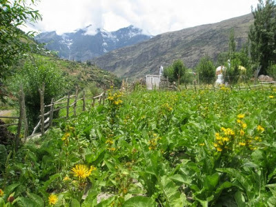 A field of Manu (Inula racemosa) in bloom. After three years of growing, the roots are harvested for their medicinal properties. |
