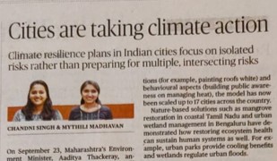 5 October 2021| Op-ed in The Hindu which speaks of how climate resilience plans in Indian cities focus on isolated risks rather than preparing for multiple, risks [Link].
