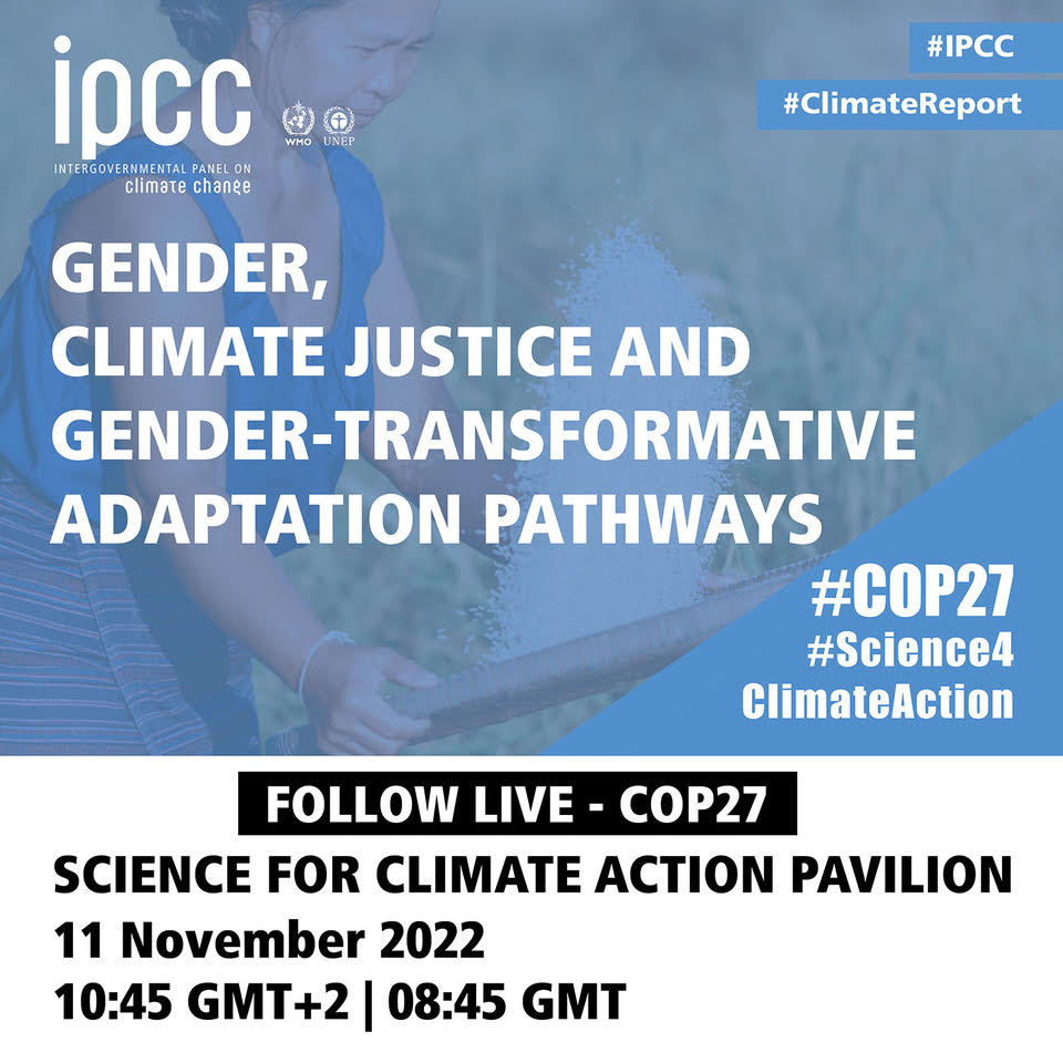11 November 2022 | Panel on ‘Gender, Climate Justice and Gender-Transformative Adaptation Pathways’, drawing on the IPCC Sixth Assessment Report. [Link]