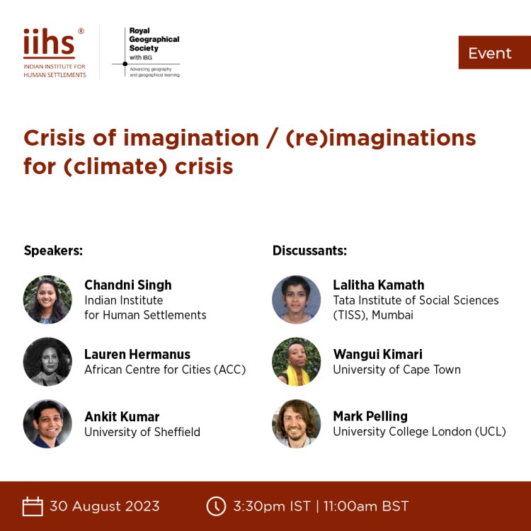 13 October 2021| A conversation with Aditya Bahadur, Thomas Tanner on the need for revisiting traditional climate resilience frameworks in cities across the Global South, with panellists Divya Sharma and Cristina Rumbaitis del Rio (Link).